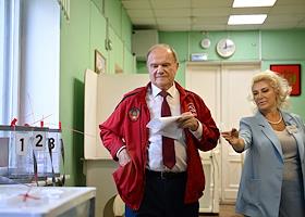 Политика Единый день голосования. Выборы мэра Москвы. Голосование председателя ЦК КПРФ, руководителя фракции КПРФ в Государственной Думе РФ Геннадия Зюганова в Доме творчества на Миуссах.