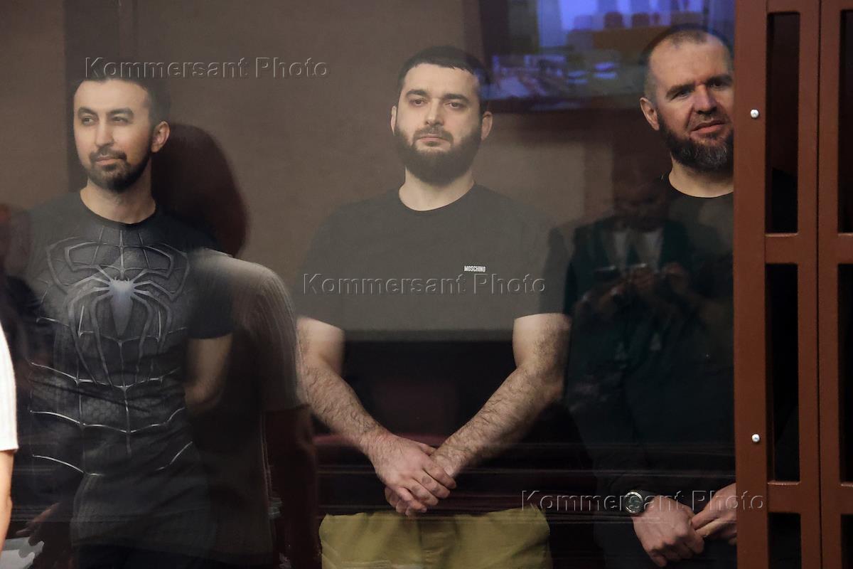 Правосудие Оглашение приговора по уголовному делу в отношении Гаджиева Абдулмумина (в центре), Ризванова Абубакара (справа), Тамбиева Кемала , обвиняемых в совершении преступлений, предусмотренных ч. 2 ст. 282.2, ч. 4 ст. 205.1 и ч. 2 ст. 205.5 УК РФ. в Южном окружном военном суде.