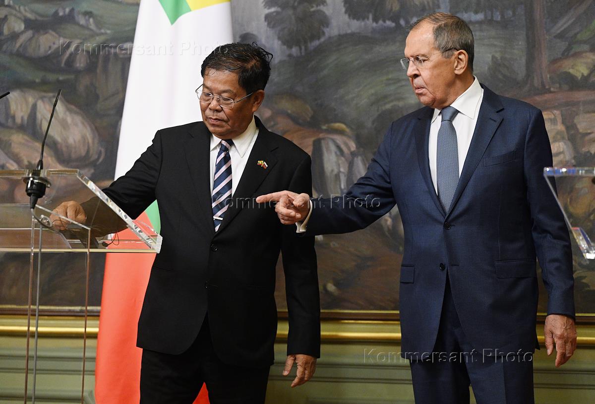 Министр иностранных дел России Сергей Лавров (слева) и министр иностранных дел Республики Мьянмы Тан…