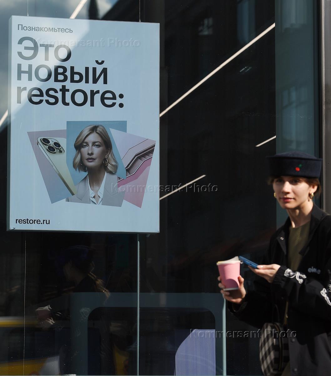 A sign for the Restore hardware and electronics store chain on Neglinnaya Street.