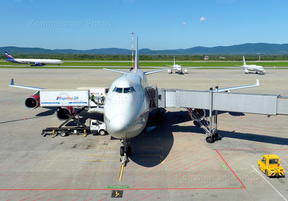 Международный аэропорт Владивосток имени В.К.Арсеньева. Жанровая фотография. Самолеты на поле.