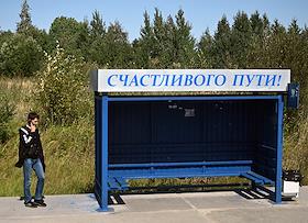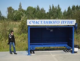 Виды рабочего поселка Ванино. Жанровая фотография. Надпись на павильоне автобусной остановки…