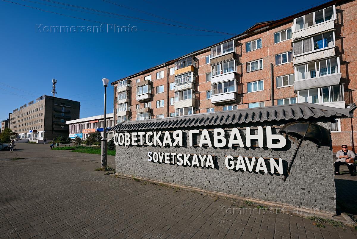 Виды рабочего поселка Ванино. Жанровая фотография. Декоративная конструкция с надписью "Советская…