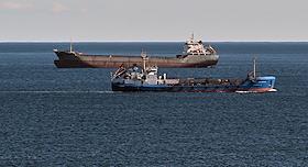 Виды рабочего поселка Ванино. Жанровая фотография. Грузовое судно в акватории Татарского пролива.