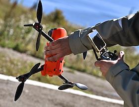 Жанровая фотография. Квадрокоптер в руке перед запуском.