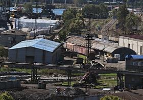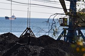 Виды рабочего поселка Ванино. Ванинский морской торговый порт. Площадка для хранения угля.