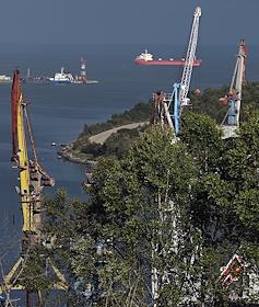 Рабочий поселок Ванино. Ванинский морской торговый порт. Жанровая фотография. Грузовые суда на рейде…
