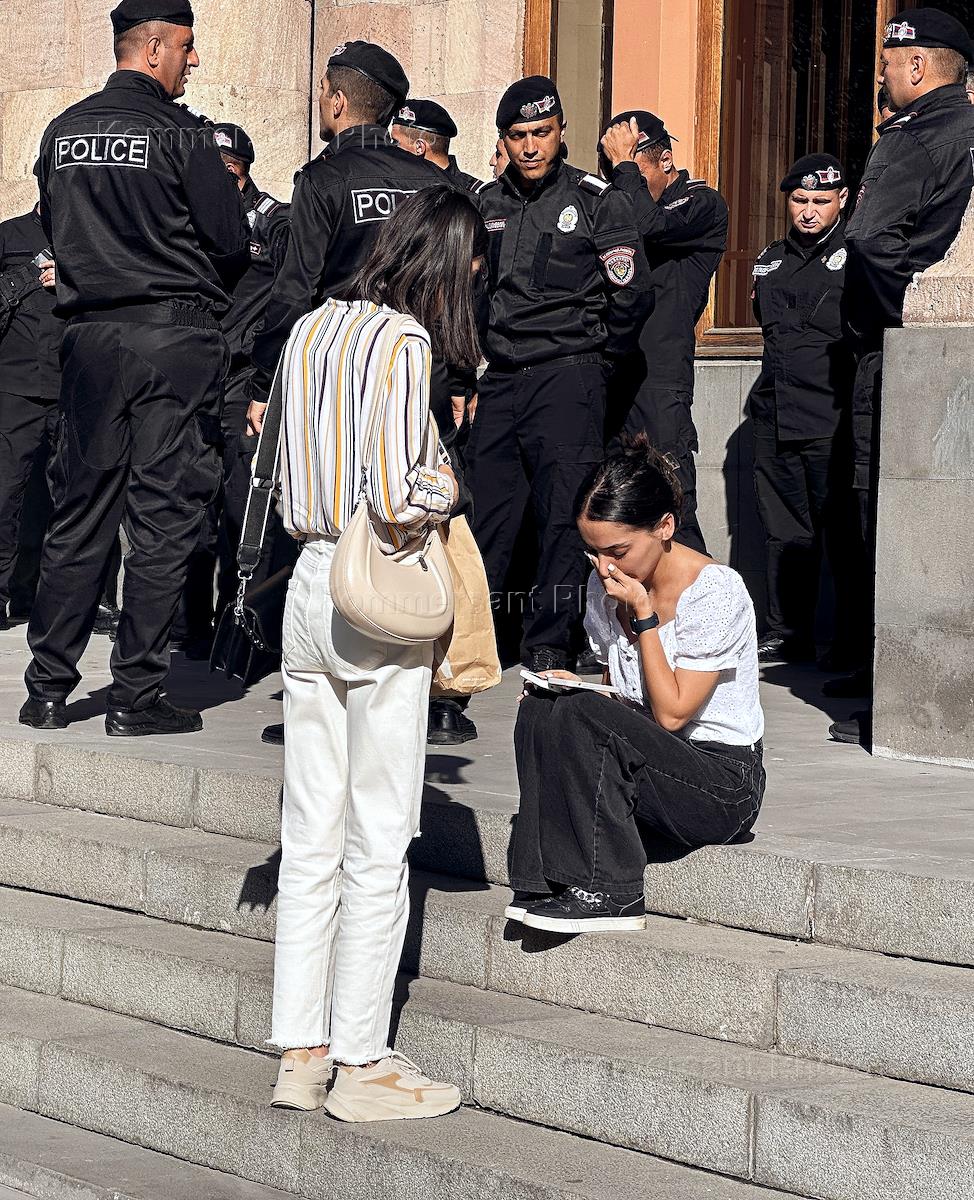 Ситуация у здания правительства Армении после начала "антитеррористической операции" Азербайджана в Нагорном Карабахе.