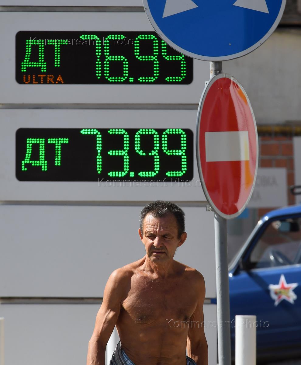 Жанровая фотография. Цены на дизельное топливо и бензин на электронном табло на автозаправочной…