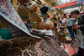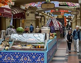 Выставка-продажа "Шелковый путь" в Главном универсальном магазине (ГУМ). Жанровая фотография.