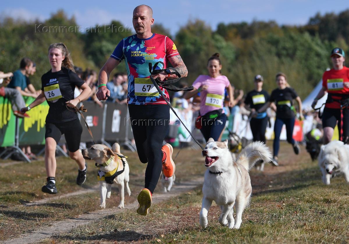 Забег с собаками – кросс "Быстрый пес" в парке "Битцевский лес". Жанровая фотография.