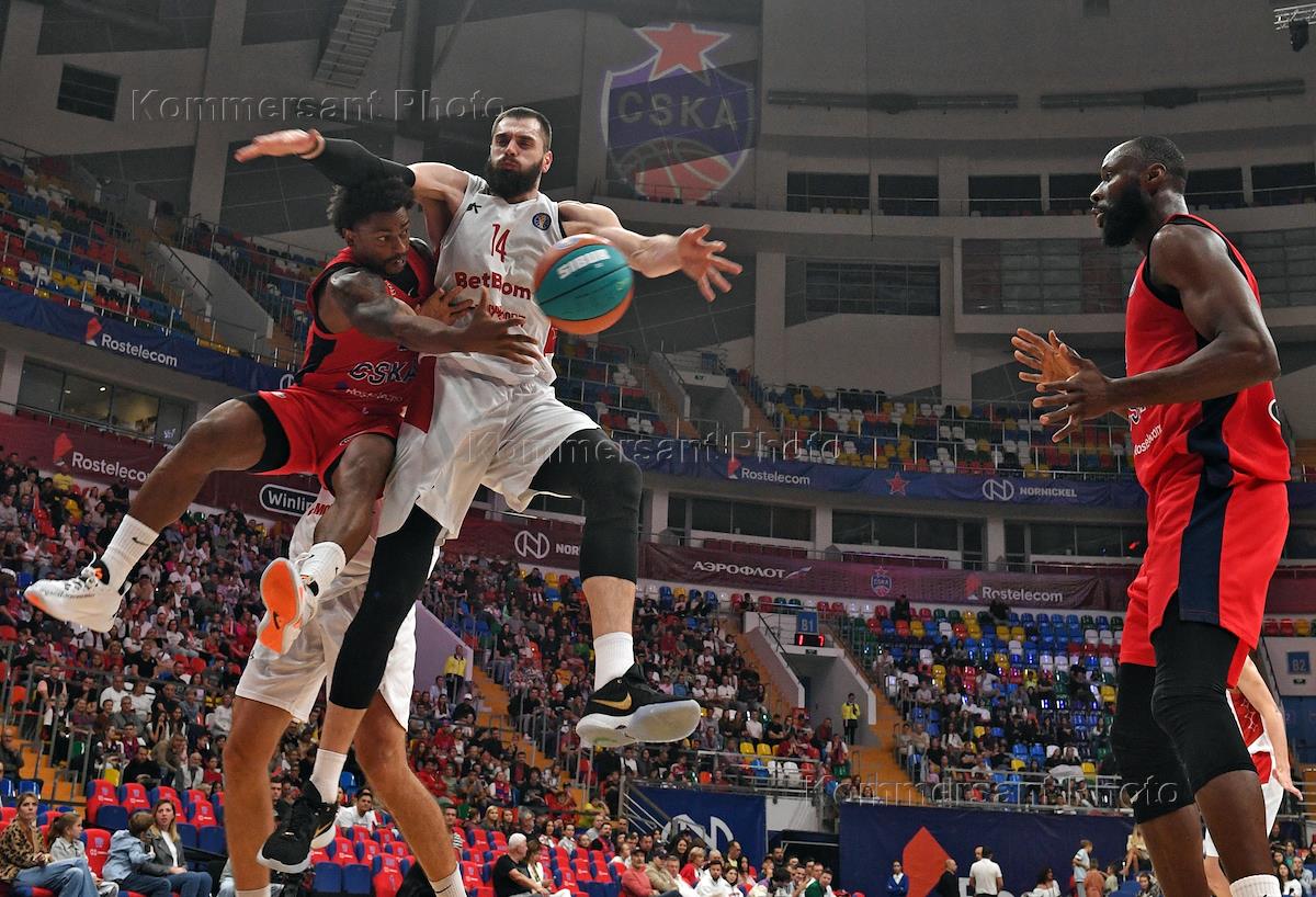 Единая лига ВТБ по баскетболу. Матч между командам ЦСКА (Москва) - МБА (Москва) на спортивной арене…