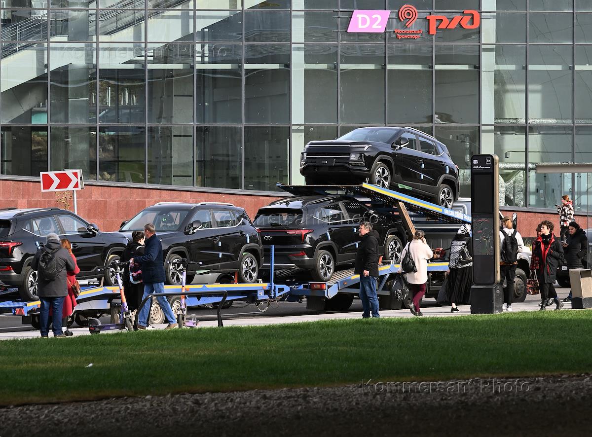 Виды Москвы. Жанровая фотография. Автовоз на фоне павильона станции второго московского центрального…