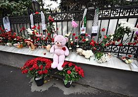 Общество Ситуация у посольства Палестины в Москве. Цветы у здания посольства в память о погибших в ходе палестино-израильского конфликта. Люди принесли цветы и игрушки к посольству Палестины в Москве после атаки на больницу "Аль-Ахли" в секторе Газа.