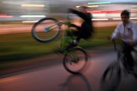 Виды Омска. Жанровая фотография. Молодые люди едут на велосипедах.