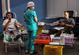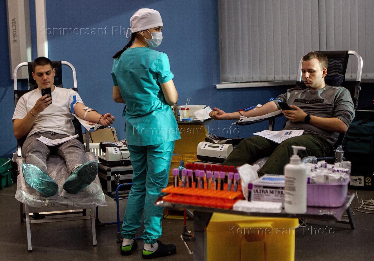 Забор донорской крови. Жанровая фотография. Доноры во время сдачи крови.