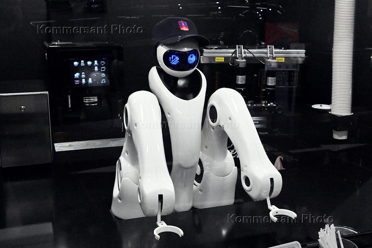Музей Гаража особого назначения ФСО России на ВДНХ. Жанровая фотография. Робот-бариста в кафе музея.