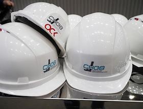 Средне-Невский судостроительный завод (СНСЗ). Жанровая фотография. Белые защитные каски с логотипом…