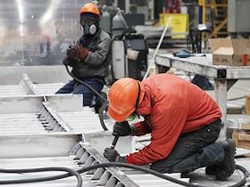 Средне-Невский судостроительный завод (СНСЗ). Жанровая фотография. Сварщик во время работы в цехе…
