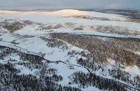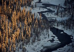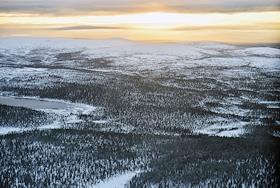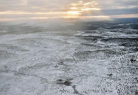 Виды Мурманской области. Виды лесотундры из иллюминатора вертолета.
