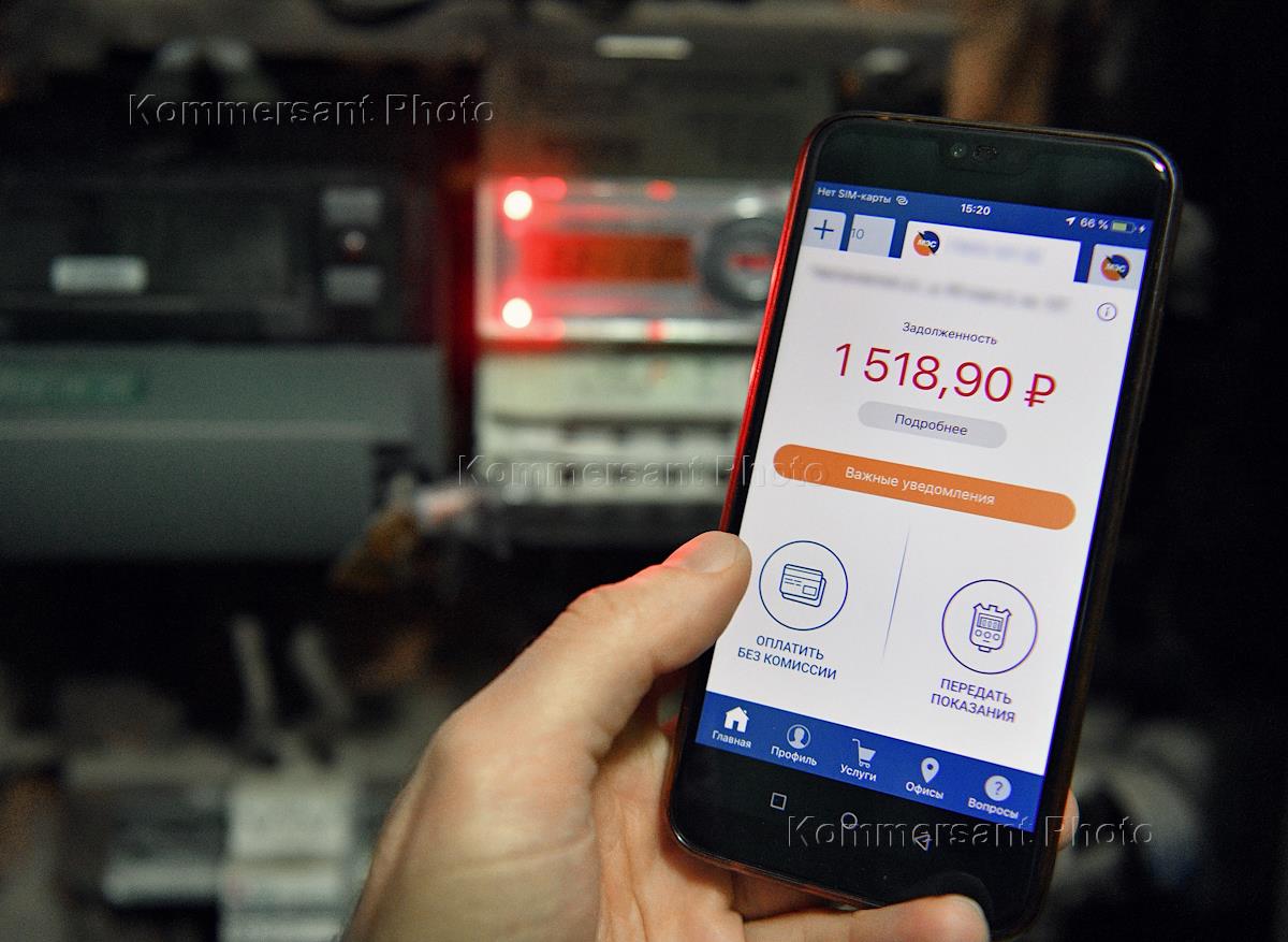 Жанровая фотография. Счетчик учета электроэнергии и цена за электричество на экране мобильного…