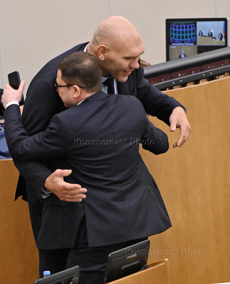 Пленарное заседание Государственной думы (ГД) России. Слева направо: председатель ГД России Вячеслав…