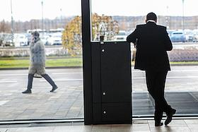 Жанровая фотография. Силуэт мужчины на фоне стеклянной стены здания.