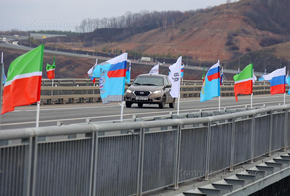 Экономика и бизнес Церемония открытия движения по мостовому переходу через реку Свияга на 757-ом километре федеральной дороги М-7 "Волга" на территории Зеленодольского района Республики Татарстан.