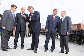 Президент России Владимир Путин (в центре), президент ОАО "Российские железные дороги" (РЖД)…