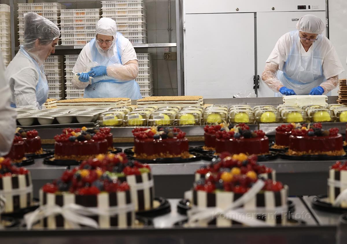 Кондитерское производство "Север-Метрополь" в Санкт-Петербурге. Жанровая фотография. Торт от…