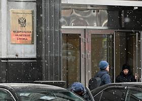 Виды Москвы. Жанровая фотография. Вывеска на здании Федеральной налоговой службы России на улице…