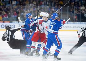 Спорт Континентальная хоккейная лига (КХЛ). Чемпионат сезона 2023/24. Матч между командами СКА (Санкт-Петербург) - ЦСКА (Москва) на стадионе "Ледовый дворец".