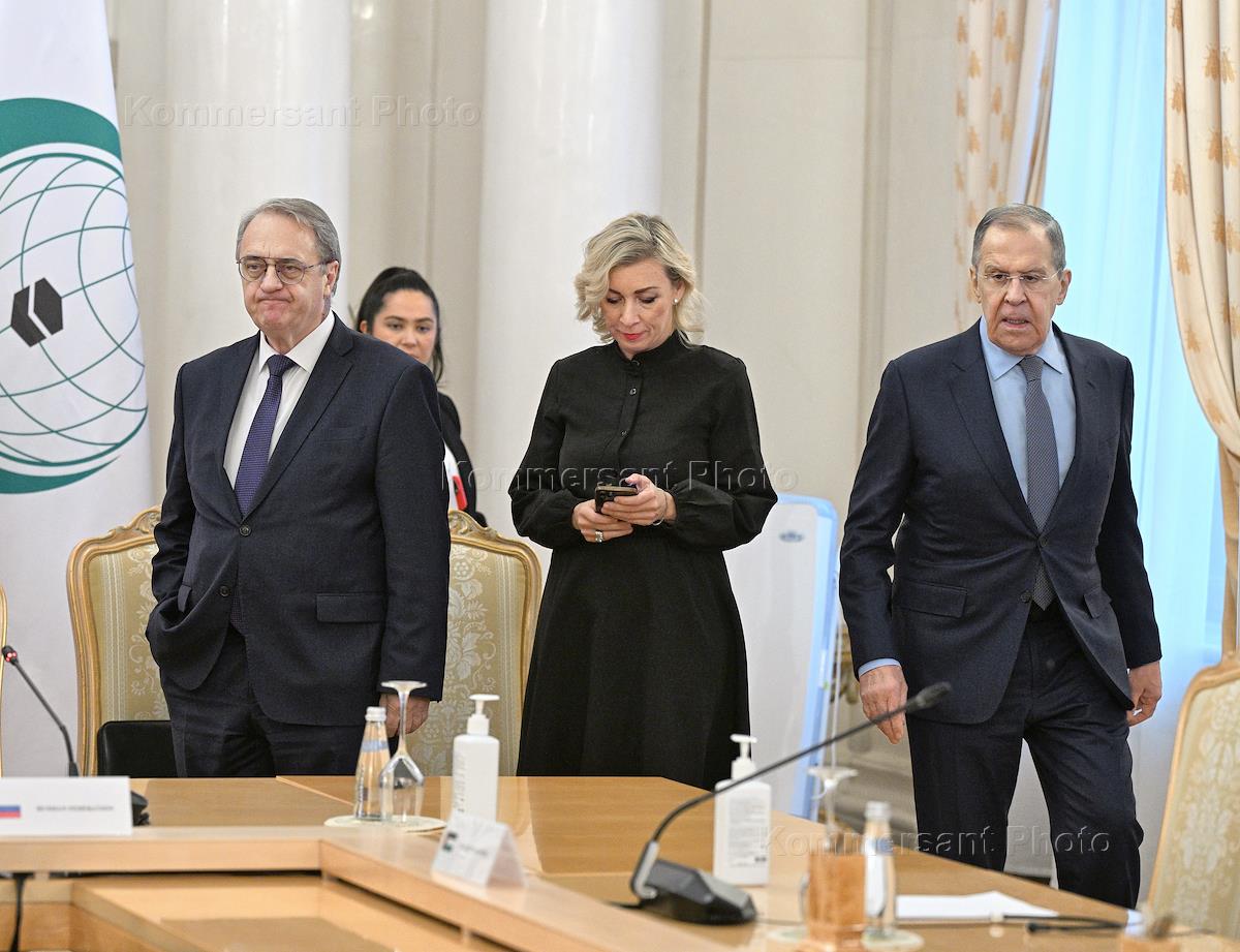 Политика Переговоры Министра иностранных дел России Сергея Лаврова с главами дипломатических ведомств ряда стран-членов ОИС и ЛАГ (Египет, Индонезия, Иордания, Катар, Палестина, Саудовская Аравия, генсек ОИС) по ситуации в секторе Газа в Доме приемов МИД России.