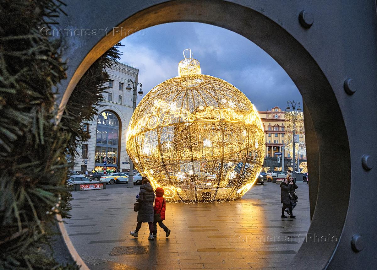 Виды Москвы. Лубянская площадь. Жанровая фотография. Новогоднее убранство города.