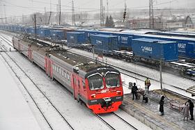 Жанровая фотография. Электричка и грузовые поезда на железнодорожной станции Базайха.