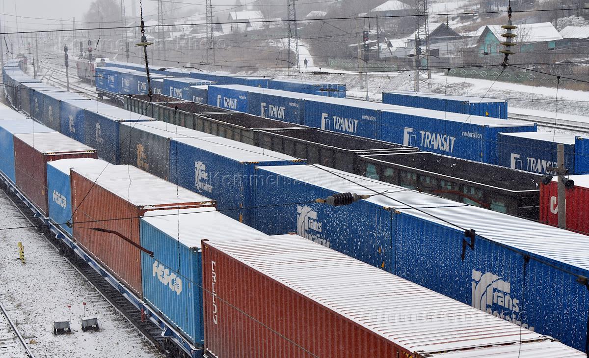 Жанровая фотография. Грузовые поезда на железнодорожной станции Базайха.