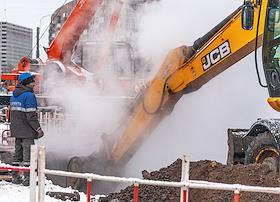 Устранение аварийной ситуации прорыва горячего водоснабжения теплосети на проспекте Большевиков.