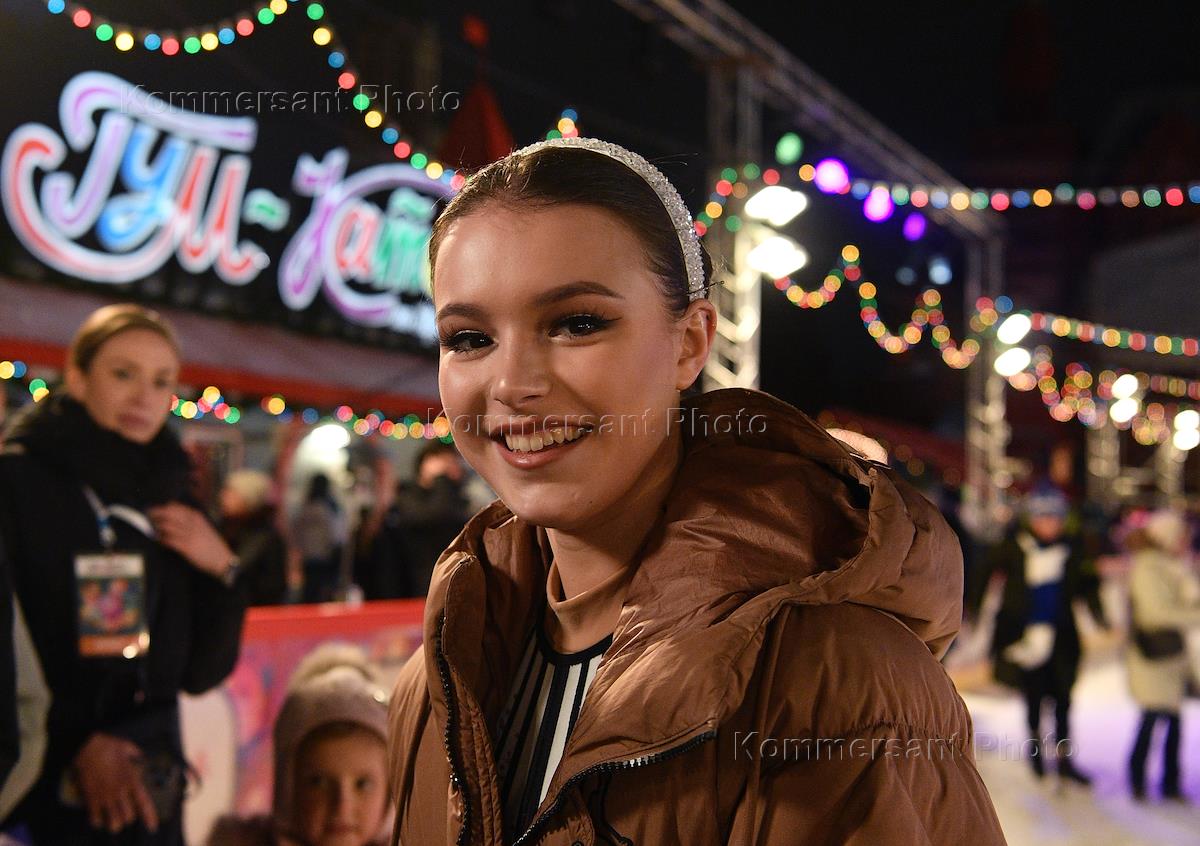 Церемония открытия ГУМ-Катка на Красной площади. Фигуристка Анна Щербакова на церемонии.