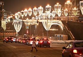 Виды Москвы. Большой Москворецкий мост. Жанровая фотография. Новогоднее оформление города.
