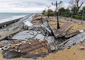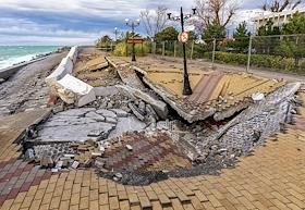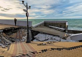 Жанровая фотография. Последствия шторма в ЖК "Морской квартал". Обрушенная от шторма тротуарная…