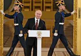Церемония вручения верительных грамот вновь прибывшими послами иностранных государств президенту России Владимиру Путину в Александровском зале Большого Кремлевского дворца.