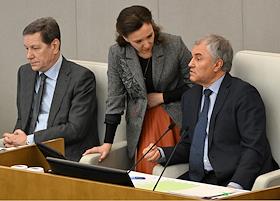 Пленарное заседание Государственной думы (ГД) России. Слева направо: председатель комитета ГД России…