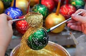 Производство новогодних игрушек из стекла на фабрике елочных украшений "Бирюсинка".