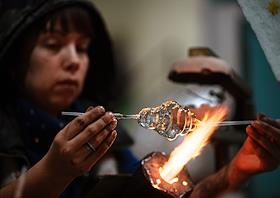 Производство новогодних игрушек из стекла на фабрике елочных украшений "Бирюсинка".