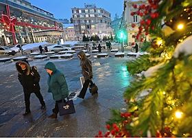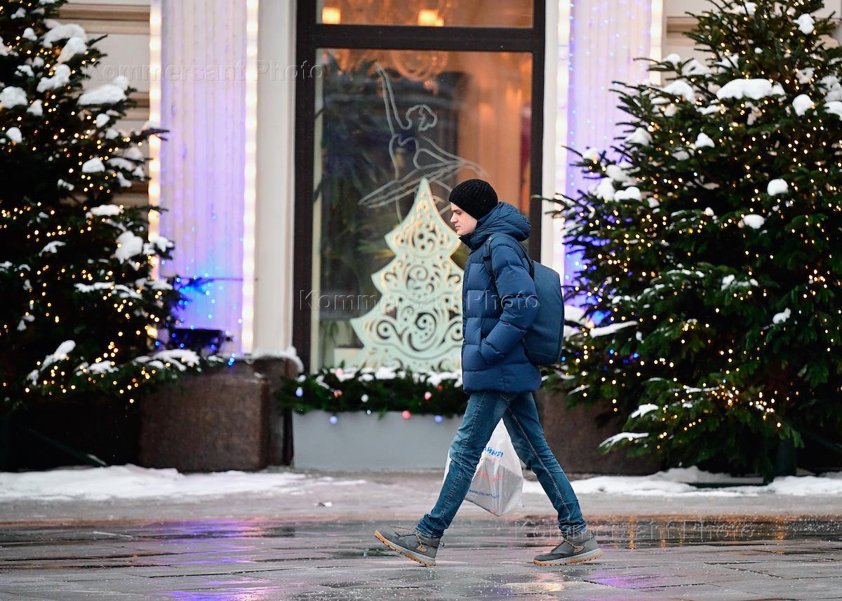 Виды Москвы. Тверская улица, Пушкинская площадь. Жанровая фотография. Новогоднее оформление города.