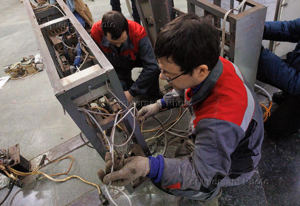 Замена турникетов на станции метро "Площадь 1905 года". Жанровая фотография. Рабочие во время…