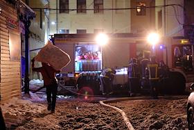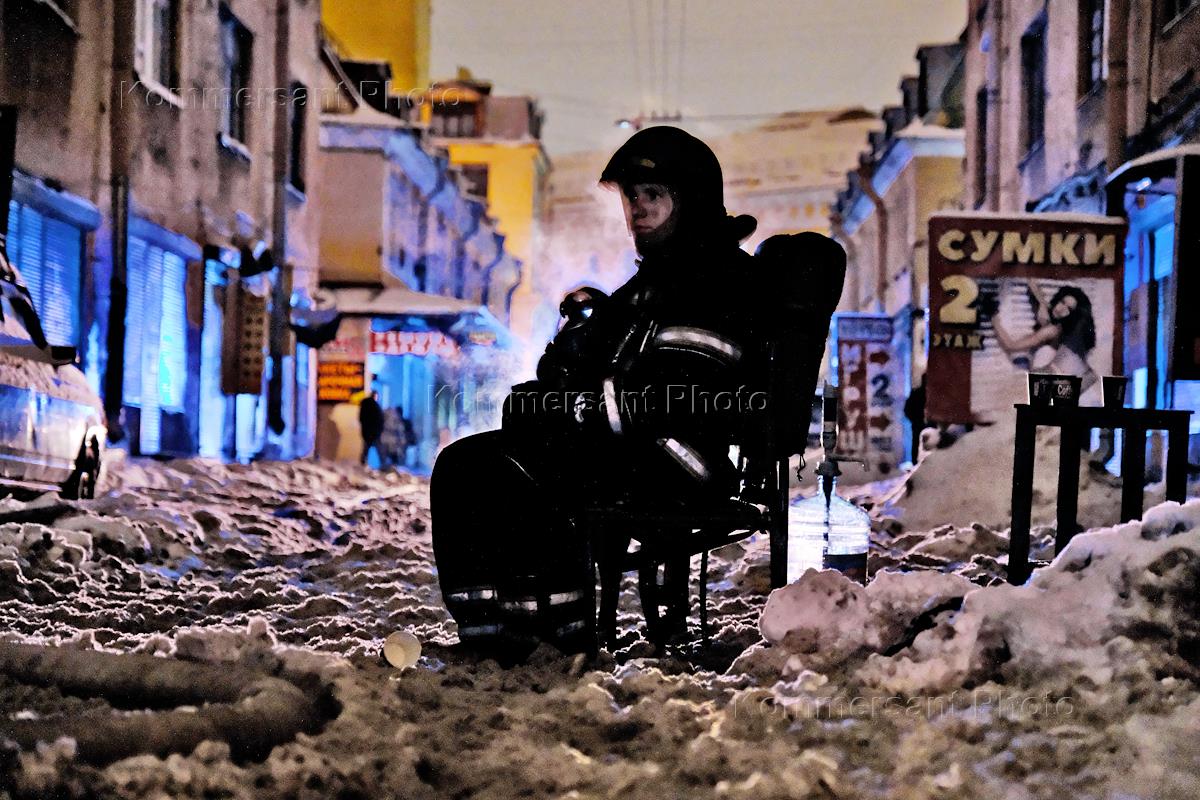Последствия пожара в одном из корпусов в Апраксином дворе. Сотрудник МЧС после тушения пожара.