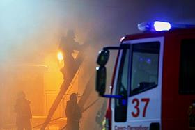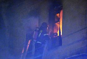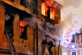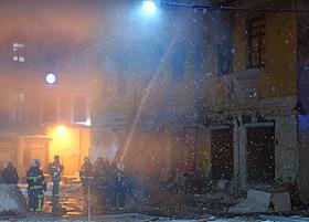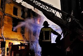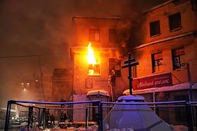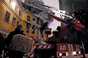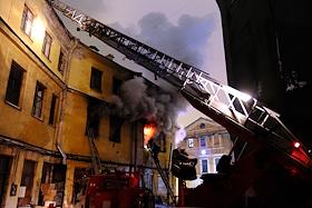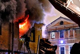 Последствия пожара в одном из корпусов рынка "Апраксин двор". Жанровая фотография. Огонь на втором…