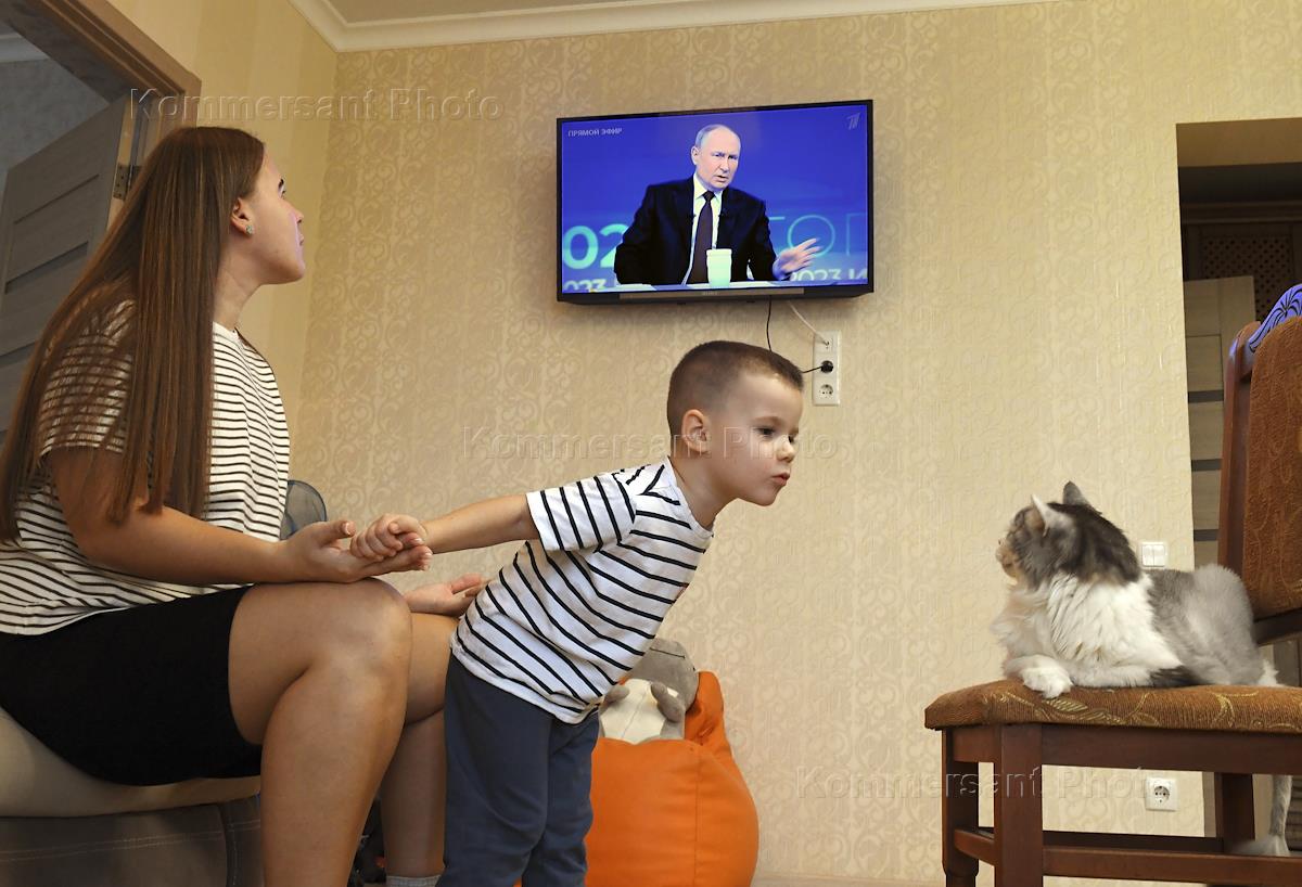 Трансляция программы "Итоги года" с президентом России Владимиром Путиным в Гостином дворе. В 2023…