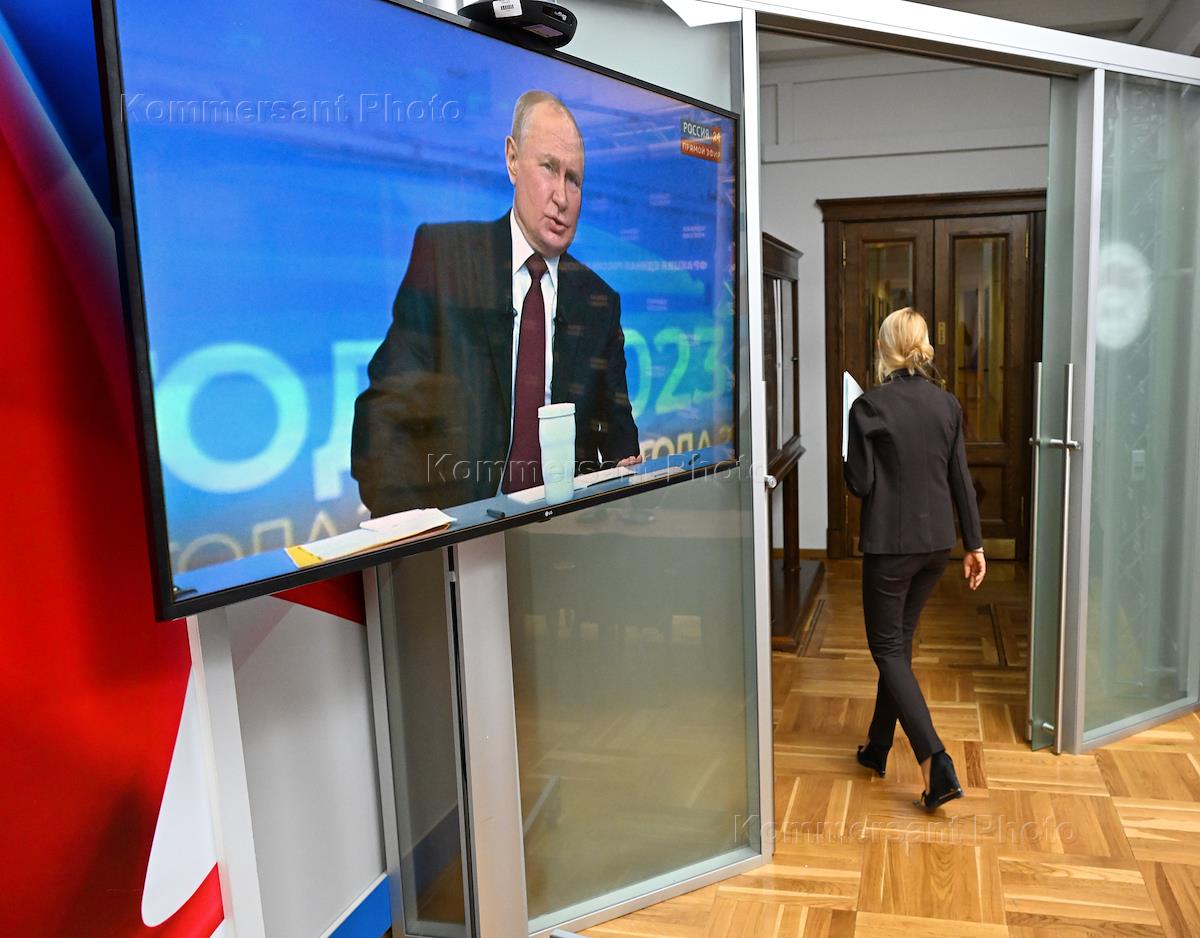 Политика Депутаты Государственной думы (ГД) России смотрят программу "Итоги года" с президентом России Владимиром Путиным в здании ГД России. В 2023 году прямая линия с гражданами и большая ежегодная пресс-конференция с журналистами проходят в совмещенном формате.